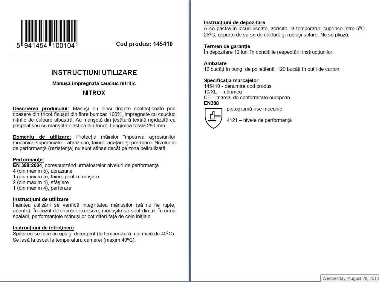 Manusi impregnate cauciuc nitrilic, marimea 10