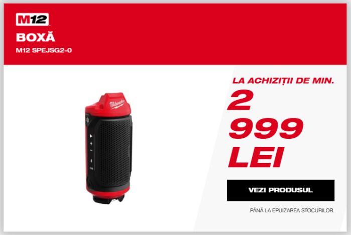 Primești o boxă sau un radio la 2 LEI cu TVA când achiziționezi scule electrice MILWAUKEE® între 2 martie și 31 mai.