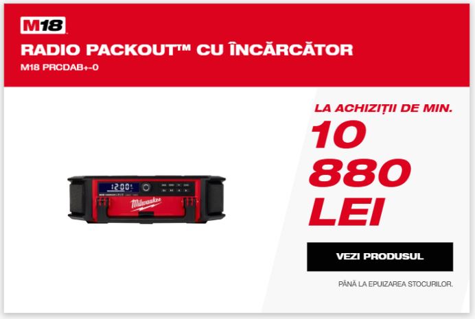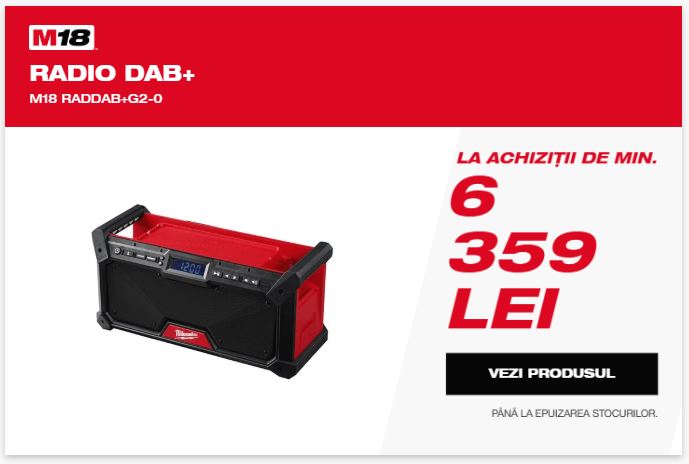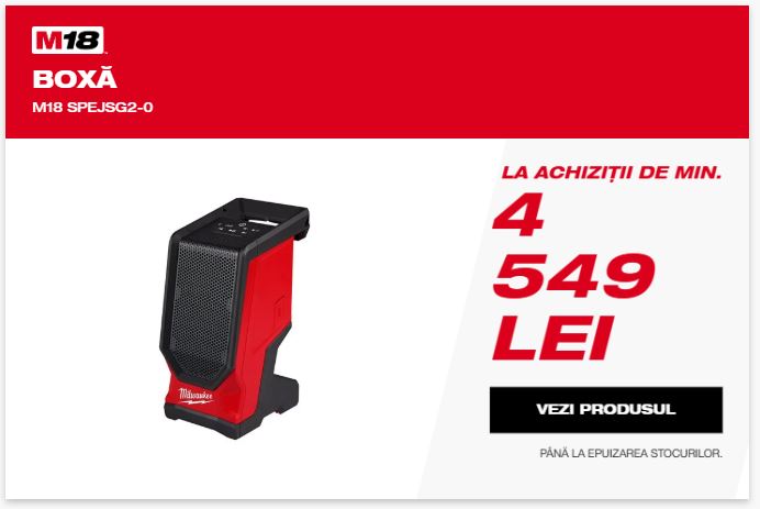 ACHIZIȚIONEAZĂ ACUM SCULE ELECTRICE MILWAUKEE® PENTRU A PRIMI O BOXĂ SAU UN RADIO LA 2 LEI CU TVA